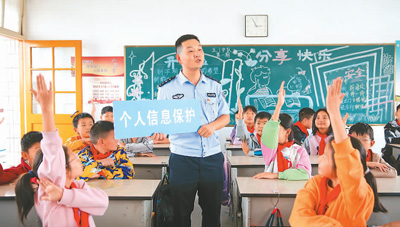 10月11日,民警向贵州省赤水市大同小学学生宣传网络保护及相关法律知识。